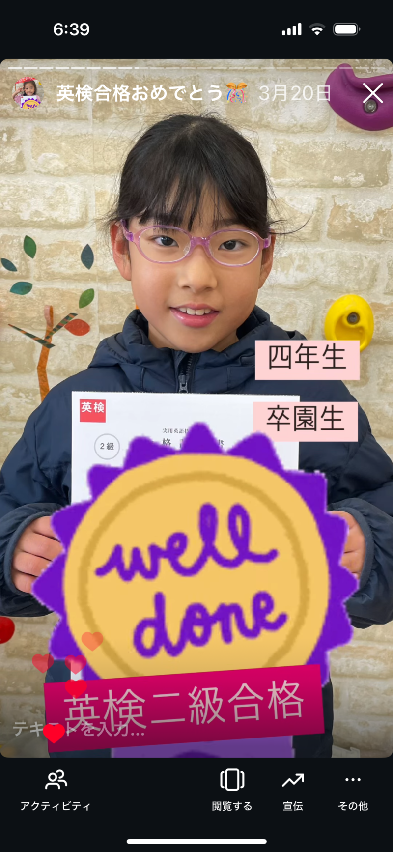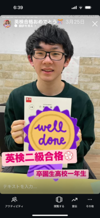英検二級合格2名 高校1年卒業生アフタークラス 小学4年卒業生 アフタークラス