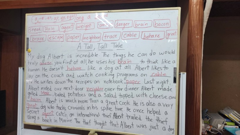 • 年長さんクラス、長文問題に毎日取り組んでいます。
