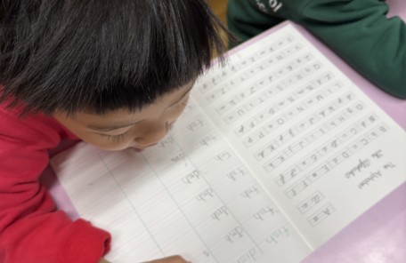 Pre クラスのお友達。運筆力をつける練習を行っています